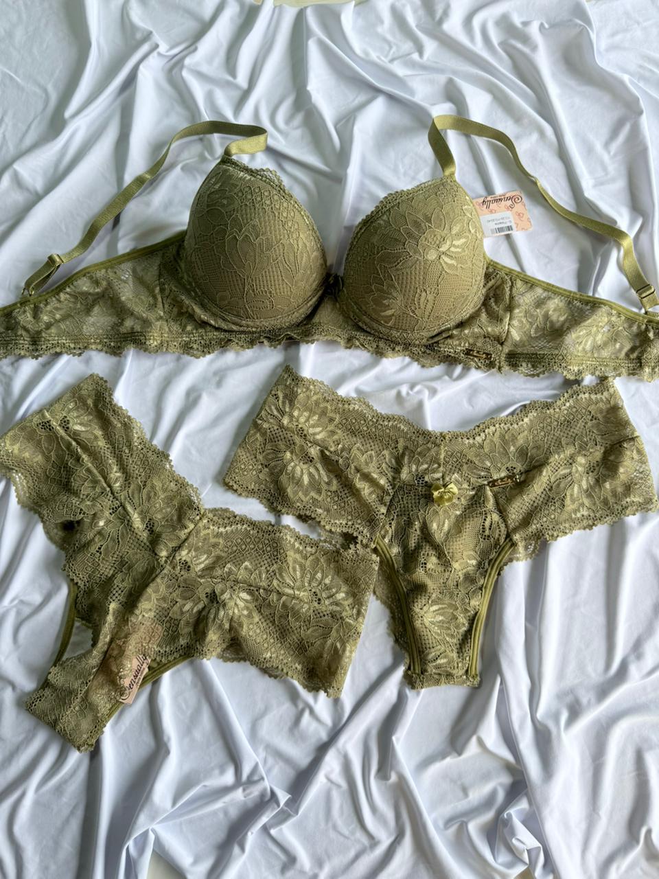Conjunto de Lingerie Todo Rendado | Ref. AI | Bojo, Base e Aro Tradicional